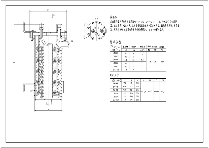| 结构特点: | 换热器用于机械密封辅助系统API Plan21.22.23.41中,对工作液进行冷却或保温,换热管设计成螺旋状,具有显著的换热效果和紧凑的尺寸。换热器可拆卸,易于清洗,其设计制造,检验验收和材料的选择符合GB150-98标准规定。 |