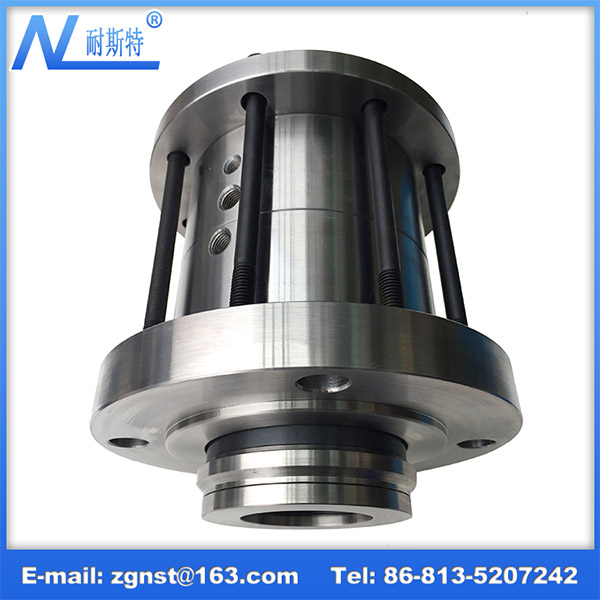| 结构特点: | 1:此机械密封为集装式双端面,静止式多弹簧结构,可夹紧传动和可调节式驱动环传动两种方式。 2:安装时,冷却水口,保持低进高出,压力≤0.2MPa,普通工业软水即可。 3:当确定机械密封安装无误后,开机前需取下限位块。 4:机械密封运行时,必须先开冷却水,再启动设备。 5:可根据客户需求,可根据客户需要安装尺寸进行设计制造。 |